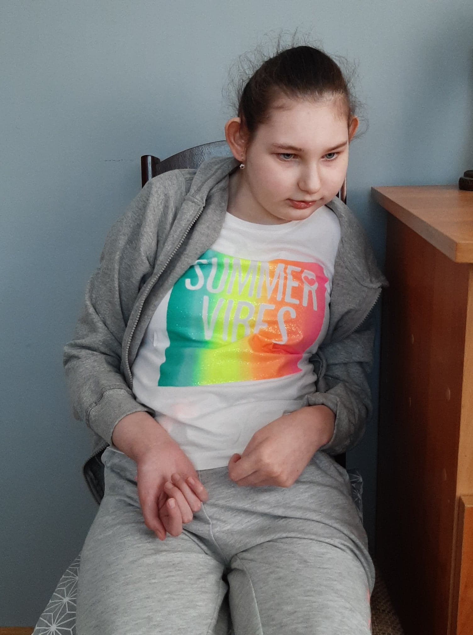 Schorzenie: mózgowe porażenie dziecięce, niedowład czterokończynowy, małogłowie, padaczka, obustronny, głęboki niedosłuch