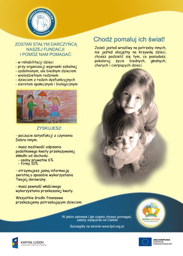 Jeżeli jesteś wrażliwy na potrzeby innych, nie jesteś obojętny na krzywdę dzieci, chcesz podzielić się tym, co posiadasz, "pokoloruj życie" potrzebujących, chorych i cierpiących dzieci.