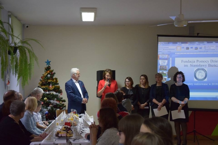 W minioną sobotę spotkaliśmy się na wspólnej Wigilii w Szkole Podstawowej w Brzozowie. Wśród zaproszonych gości byli dyrektorzy szkół, Rada Fundacji, wolontariusze, instruktorzy, podopieczni Fundacji wraz z rodzicami. Państwo Bieńczakowie złożyli wszystkim życzenia świąteczne, nie zabrakło również dzielenia się opłatkiem. W części artystycznej wystąpili: Marysia, Oliwka i Mikołaj, w układach wokalno – tanecznych, grupa wokalna Sing Star i dwie grupy teatralne. Pięknie zaprezentowali swoje talenty. W trakcie spotkania był też czas na podsumowanie wydarzeń z całego roku oraz podziękowanie wszystkim Wolontariuszom, którzy pracują charytatywnie i w szczególny sposób wspierają naszą Fundację.