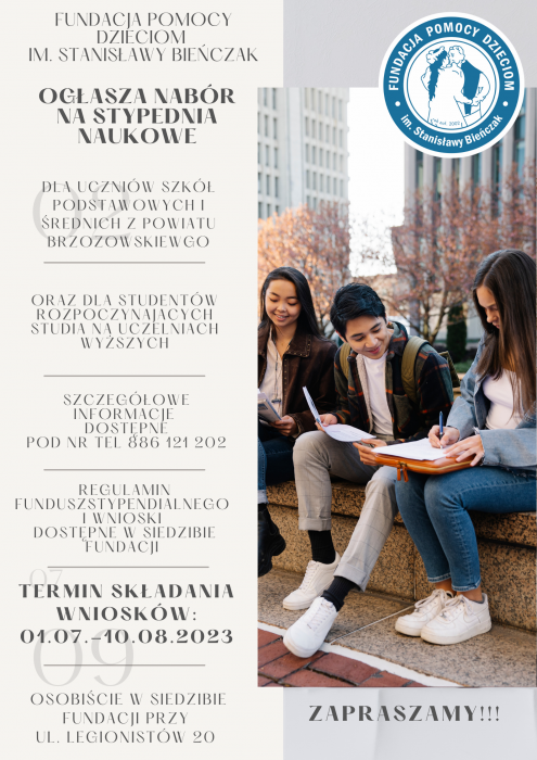 Ruszył nabór wniosków dofunduszu stypendialnego. nabór trwa do 10.08.2023. Szczegóły w Regulaminie pod linkiem: