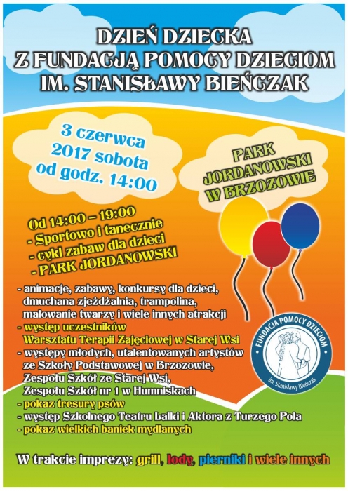 SERDECZNIE ZAPRASZAMY WSZYSTKIE DZIECI NA ŚWIĘTOWANIE DNIA DZIECKA 3.06.2017 DO PARKU JORDANOWSKIEGO W BRZOZOWIE