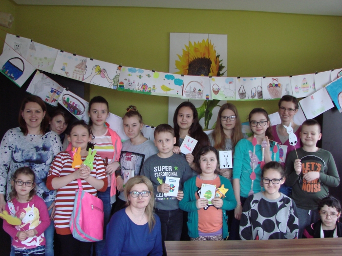 Podopieczni tworzący Akademię Kreatywnego Rozwoju wzięli udział w warsztatach papieroplastycznych, na których tworzyli kartki wielkanocne, ozdoby świąteczne z filcu, wstążek, papieru. Wykonane przedmioty posłużą jako prezenty dla innych podopiecznych Fundacji, którzy nie uczestniczą w zajęciach ze względu na swój stan zdrowia. Warsztaty poprowadzili uczestnicy Młodzieżowej Rady Fundacji. Jako liderzy sprawdzali się w umiejętnościach animowania grup dziecięcych. Służyli pomocą i podsuwali pomysły młodszym kolegom i koleżankom. Spotkania pozwoliły na wzajemną integrację uczestników projektu, a tematyka zajęć wprowadziła w atmosferę nadchodzących Świąt Wielkanocnych.