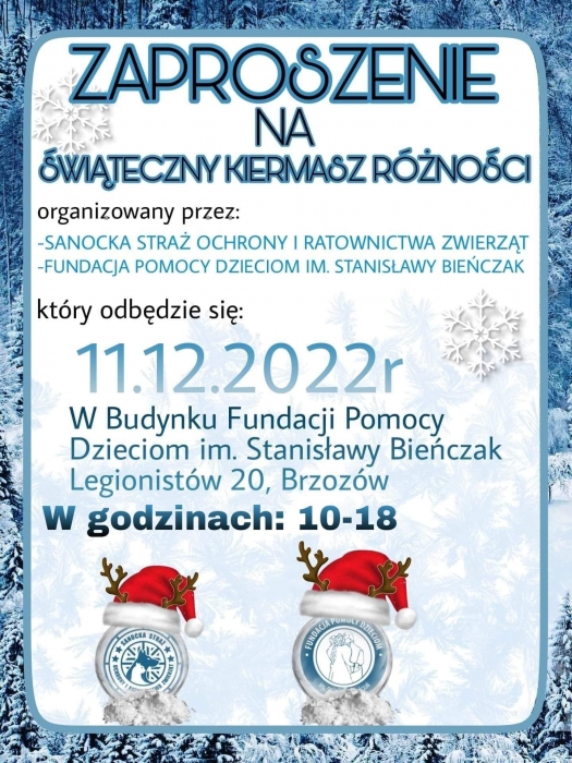 ZAPRASZAMY NA ŚWIATECZNY KIERMASZ DO NASZEJ FUNDACJI W NIEDZIELĘ 11.12.2022