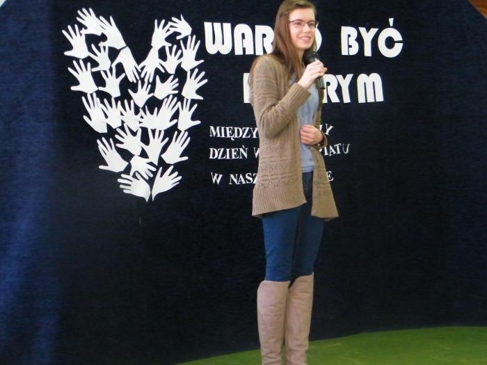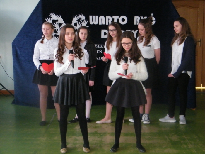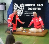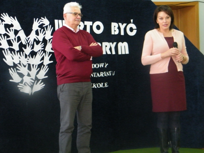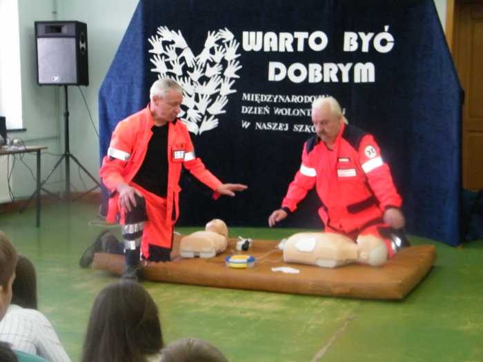 Państwo Bożena i Andrzej Bieńczakowie, założyciele Fundacji Pomocy Dzieciom im. Stanisławy Bieńczak opowiadali o działalności Fundacji, o potrzebie niesienia pomocy potrzebującym, chorym dzieciom. Pani Beata Szostak, wolontariuszka Fundacji próbowała ”zarazić” uczniów radością dzielenia się z innymi, tym co posiadamy, bo nawet najmniejsze działania mogą zmienić świat na lepsze, zaś Ratownicy medyczni Pan Wacław Konieczko i Pan Jan Haręzga, którzy niemal każdego dnia ratują życie innym, przeprowadzili specjalnie, krótkie szkolenie na temat zasad udzielania pierwszej pomocy.