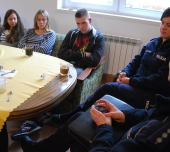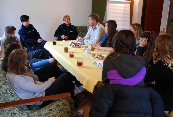 25.10.2016 r w ramach projektu „Aktywna młodzież sposobem na aktywne społeczeństwo” Młodzieżowa Rada Fundacji przeprowadziła wywiad z przedstawicielami brzozowskiej Policji. Młodzież dowiedziała się, jak wygląda droga zawodowa zaproszonych gości, jakie są ich zadania i obowiązki oraz o bezpieczeństwie w Brzozowie i okolicach z punktu widzenia Policji.
