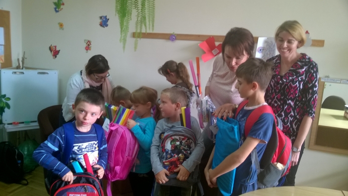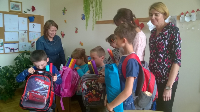 W plecakach, które otrzymały dzieci znalazły się m.in.: zeszyty, bloki rysunkowe, techniczne, farby, piórniki, przybory do pisania, rysowania.
