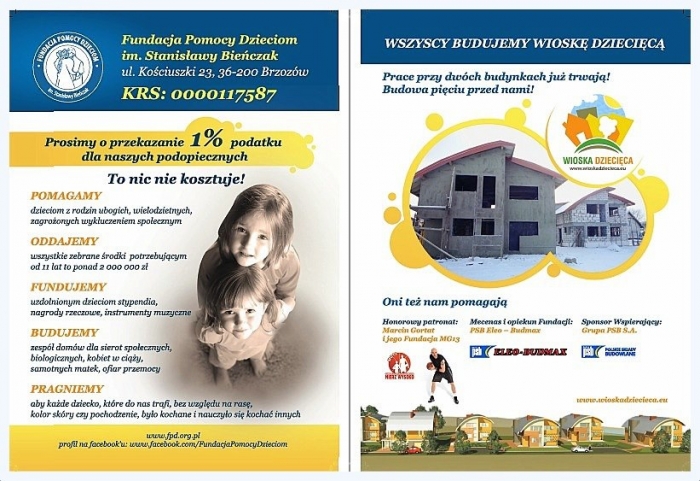 Dziękujemy Pani Lidii Sokołowskiej za przygotowanie ulotki i plakatów do kampanii 1%, Pawłowi Kopeć za administrowanie strony www Fundacji.