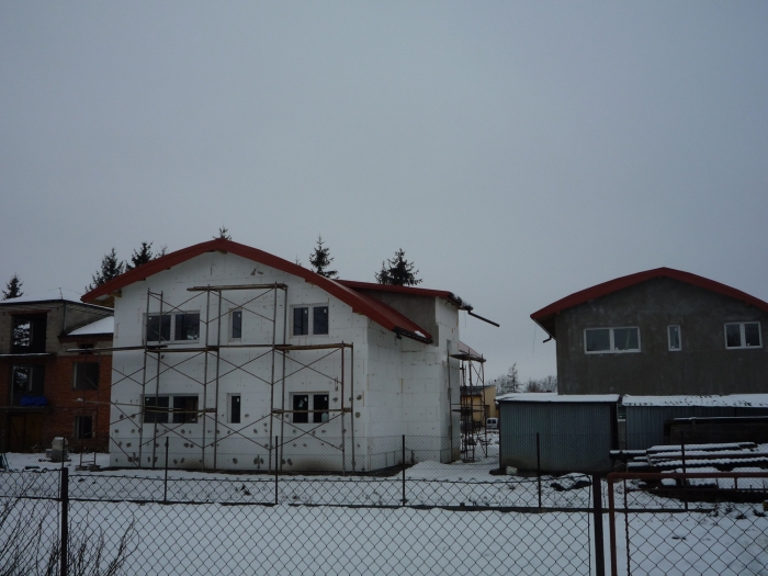 Na placu budowy trwają prace przy dwóch z sześciu budynków. W obu budynkach wstawione są już okna i rozpoczęły się prace przy instalacjach wewnętrznych.