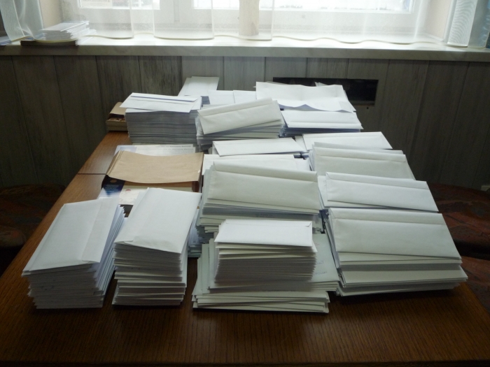Przygotowaliśmy ok. 1500 listów z życzeniami bożonarodzeniowymi, podziękowaniami za darowizny, za przekazanie 1% podatku, obrazy na aukcje dzieł sztuki oraz za materiały budowlane do budowy Wioski.