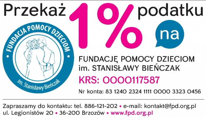 Prosimy o przekazanie 1% podatku na rzecz naszej Fundacji i naszych Podopiecznych.